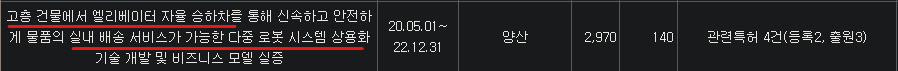2. 실내외 자율주행로봇 : 실내(호텔, 병원, 아파트), 실외(야외)에서 물류 배달