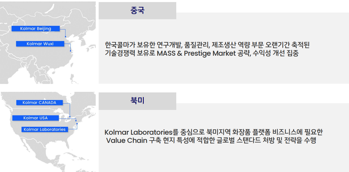 1. 한국 화장품소비 영향 : 한국콜마주식회사 한국에 위치 / 비중 : 45% (생산가능수량 기준)