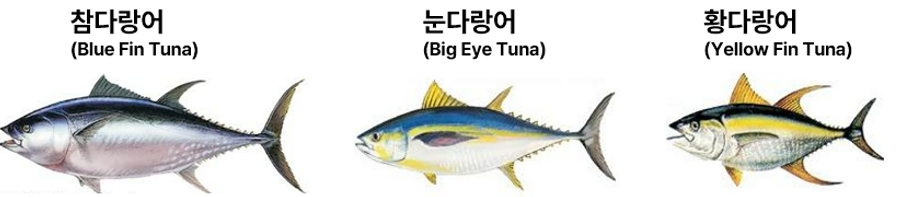 * 가격순 : 참다랑어 > 눈다랑어 > 황다랑어