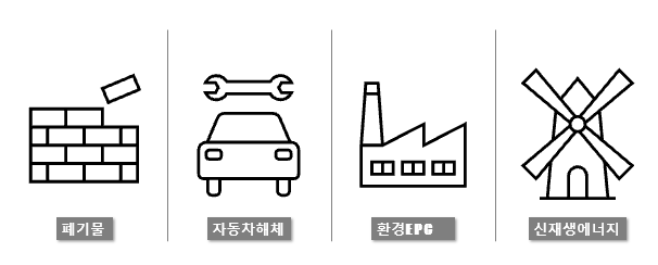 건설자원만 재활용하는 것이 아니에요. 자동차에서 나오는 것들도 재활용(자동차 부품, 전기차배터리, 수소차 등)하고요 자연스레 건설자재 폐기물 공장을 세우다보니 환경EPC(플랜트)까지 진출하게 됩니다. 소각과정에서 발생하는 열로 재생에너지를 만든다고 했죠? 인선이엔티는 육상풍력, 해상풍력까지 진출한다고 선언까지 했어요.