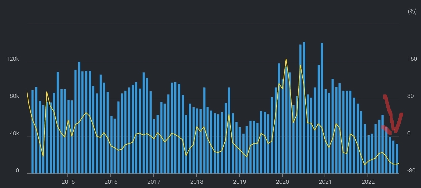 주택매매거래현황(22.16) -> 현재 고금리로 빠지는 중