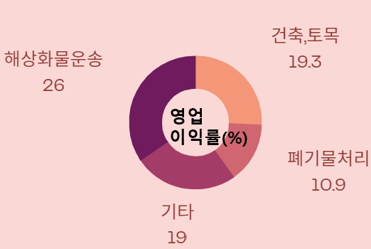 2. 사업별 매출비중(22.3분기) : 건축, 토목 74.39% > 폐기물처리 17.27% > 콘크리트 8.76% > 임대, 서비스 1.06% > 해상화물운송 0.63%