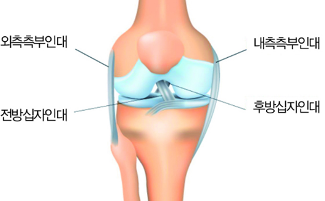 1. 무릎 인대 : 전후방십자인대, 내외측측부인대