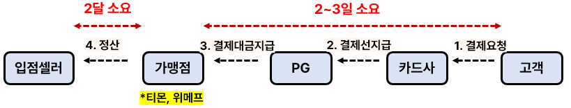 이커머스 플랫폼업체의 역할은 판매자와 소비자를 연결시켜주죠. 소비자는 플랫폼을 믿고 접속하여 구매를 하는 것인데요. 플랫폼의 신뢰 중 중요한 요소가 '정산대금'을 손에 쥐고 있을 수 있다는 것입니다. 예를 들면, 소비자가 A 판매자의 제품을 구매했는데, 배송이 안오거나 실제와 다르다면 금액환불을 요청하겠죠. 이때, 수 만여개의 개별 판매자가 직접 100% 환불해줄 것이란 보장이 없어요. 그래서, 중간 플랫폼이 돈을 묶어두고 환불을 해주죠. 이러한 이유 뿐만 아니라 정산처리시간과 비용문제로 정산대금을 지연하여 판매자에게 결제하는 것이 이커머스업계에서는 관습적이었어요. 이게 통상 2달이 걸렸습니다.