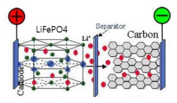 리튬인산철의 작동원리를 보면 리튬이온배터리와 마찬가지로 흑연을 품고 있는 음극재가 충방전역할을 하면서 작동해요. 차이점은 양극재에 있었던 니켈, 코발트 같은 소재들이 사라지고 철과 인산이 들어왔다는 것이죠.